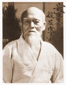 Năm 1925, khi đã 30 tuổi, sau rất nhiều lần tỷ thí với các võ sư và chưa hề chiến bại, Ueshiba Morihei tự hỏi quật ngã địch thủ và đánh gục kẻ khác, chiến đấu và đàn áp họ nhưng không kiểm soát được ý chí của bản thân mình, như thế để làm gì? Ông đã thực hành một lối sống vô cùng khổ hạnh, tìm đến các chùa chiền nổi tiếng để tịnh tâm, tìm nơi tĩnh mịch quán tưởng, thậm chí ngâm mình dưới thác nước giá buốt như trước đó 300 năm samurai Miyamoto Musashi đã từng làm với tâm nguyện được khai mở huệ nhãn và đạt giác ngộ. Cuối cùng, Ueshiba Morihei đã mặc khải được võ thuật là tình yêu của trời đất, vũ trụ. Ueshiba Morihei từng nói rằng, tập luyện võ nghệ với mục đích tiền khởi không phải để đánh bại kẻ khác mà ở chỗ thực hành lòng yêu mến trời đất trong chính bản thân mình. Từ đây Ueshiba Morihei toàn tâm, toàn ý truyền bá tư tưởng đó đến các môn đồ của mình thông qua phái võ thuật mà ông sáng lập mang tên Aikido vào năm 1942. Và cũng từ đây, Aikido lừng danh là một võ phái của chủ trương hòa bình trong bối cảnh chủ nghĩa quân phiệt Nhật Bản vẫn chưa thôi hiếu chiến mặc dù đất nước đã tang thương đổ nát vì những trận bom dữ dội từ phía đồng minh trong Thế chiến 2. Những kỹ pháp của Aikido không hướng tới mục tiêu đánh gục kẻ khác, mà là để cải sửa chính tâm hồn bạn và hòa hợp chúng ta với sự vận hành của vũ trụ.